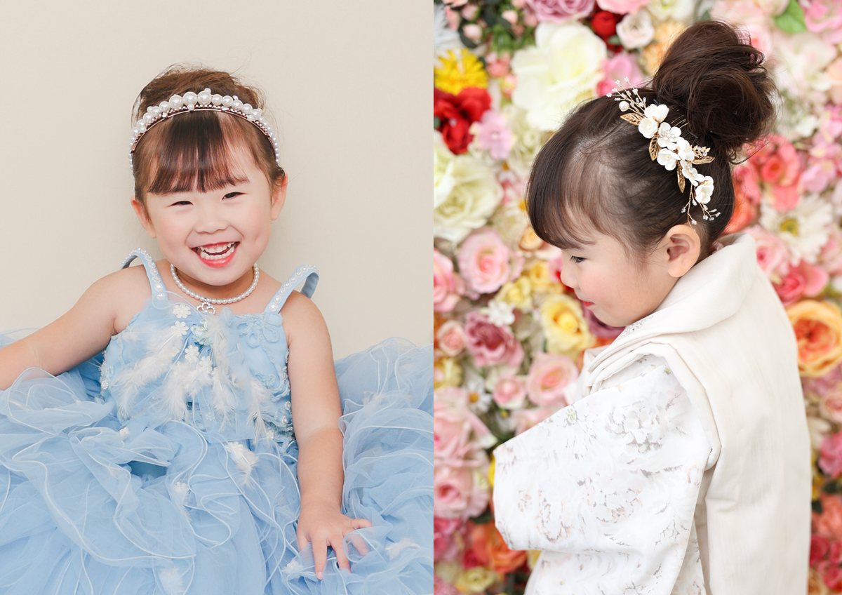 また、ヘアセット中に痛みや不快感がないよう、優しく、手早く仕上げる技術が求められます。その点、写真館でのプロの対応はとても頼りになります。