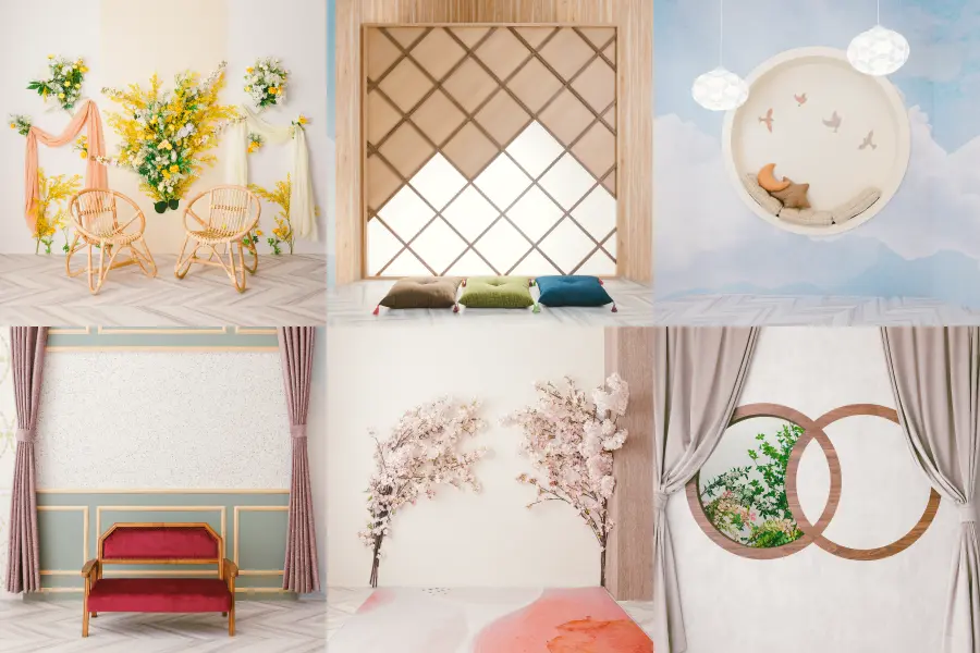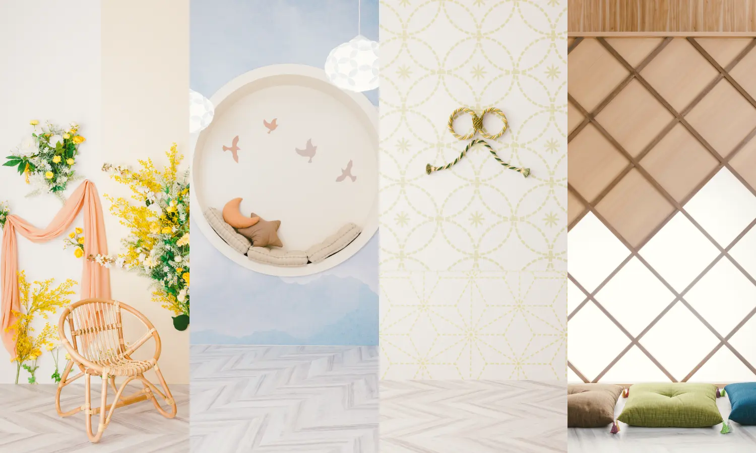 トレンドを押さえた背景セットを多数ご用意。お好きなセットと衣装で非日常感のある撮影ができます。お花のセットではにっこり笑顔で、和風なセットではおしとやかになど、テーマに合わせて撮影します。
