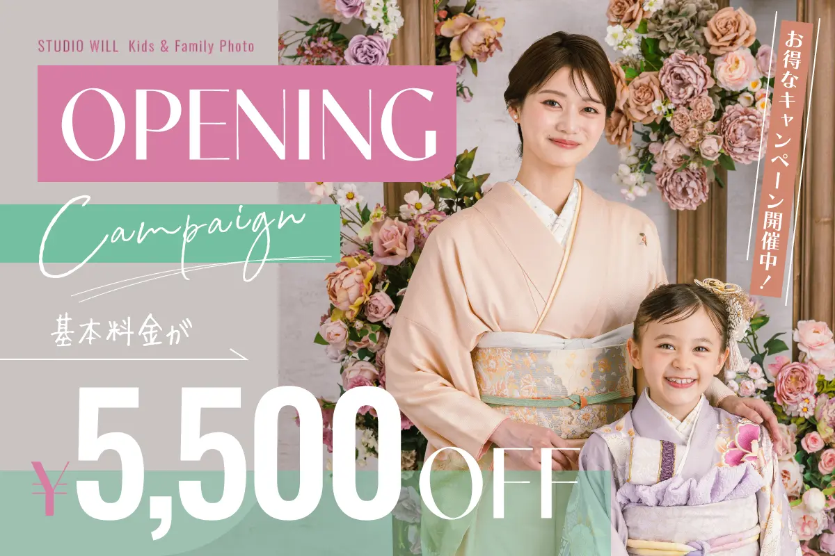 Studio willのオープンを記念して、撮影基本料金が5,500円OFFに!お得なタイミングの今がおすすめです!