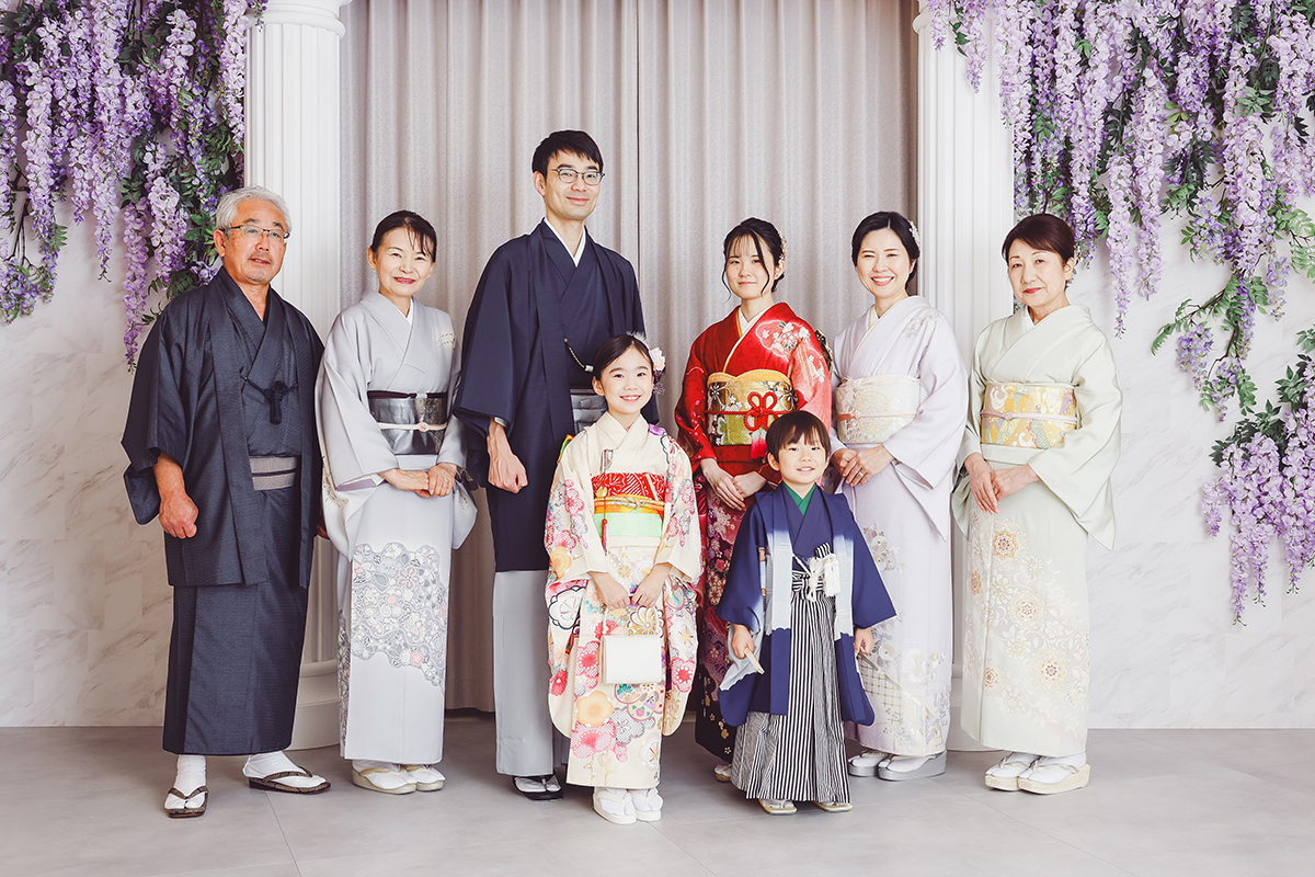 七五三の撮影は、主役のお子様はもちろんですが、ご家族の皆様にとっても大切なイベントです。お母様、お父様、ご兄弟、ご姉妹もぜひご一緒に撮影に参加してください。