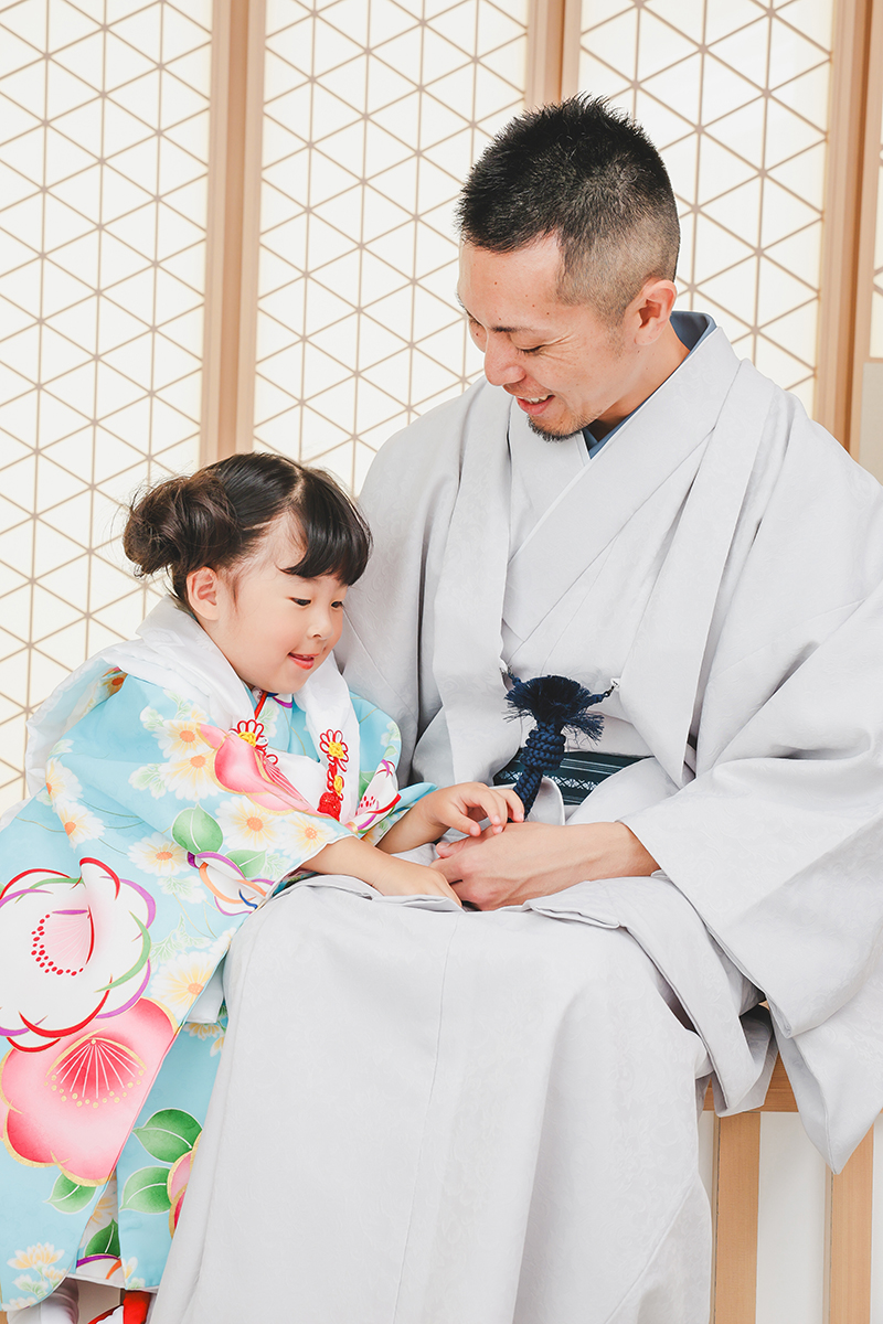手ぶらでOK、スタジオならではの気軽さ 「着物は準備が大変そう…」と心配する必要はありません。 当スタジオの「パパママ着物プラン」なら、着物のレンタルから着付けまで、すべてスタジオ内で行えます。 手ぶらで来ていただいて、家族みんなで変身して、撮影が終われば私服に着替えてそのままお食事へ。 そんなスマートなお祝いが可能です。