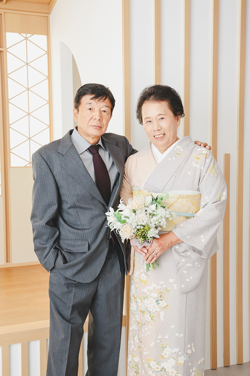 50年という半世紀を共に歩んでこられたご両親と、その背中を見て25年の歴史を築いてこられた息子さんご夫婦。 2組のご夫婦が並んで写るその姿は、単なる記念写真を超えて、連綿と続く「家族の歴史」そのものを表しているようで、とても感動的でした。