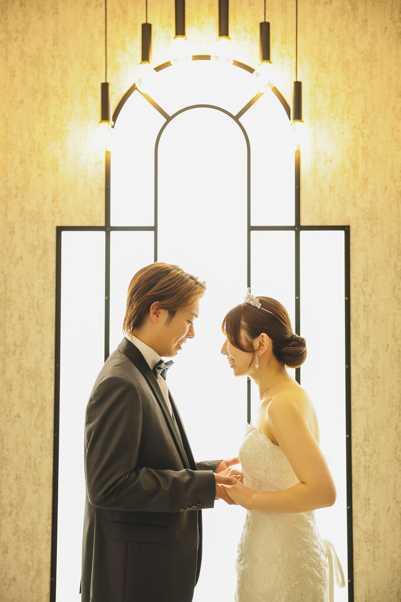 お二人で寄り添い静かに見つめ合う一コマは、数十年後に見返しても色褪せることのない普遍的な美しさを放ち続けるでしょう。