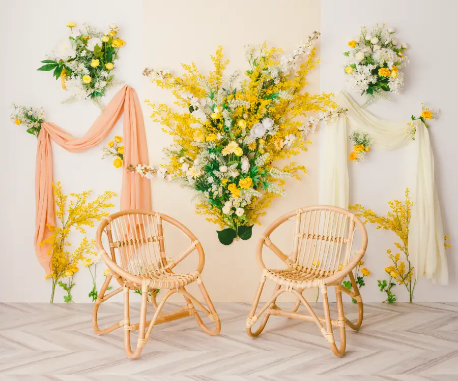 トレンドを押さえた背景セットを多数ご用意。お好きなセットと衣装で非日常感のある撮影ができます。お花のセットではにっこり笑顔で、和風なセットではおしとやかになど、テーマに合わせて撮影します。