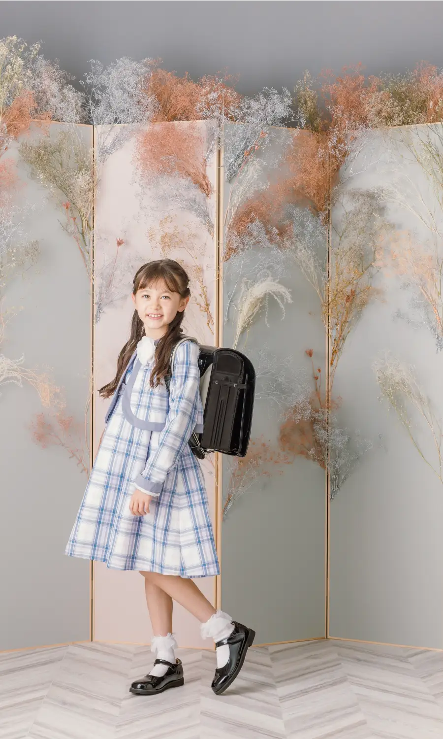 ランドセルや卒業証書などの小物の貸し出しも行っています。もちろん、ご自身のランドセルや衣装のお持ち込みも無料でOK!初めてのランドセル姿で記念撮影もオススメです!