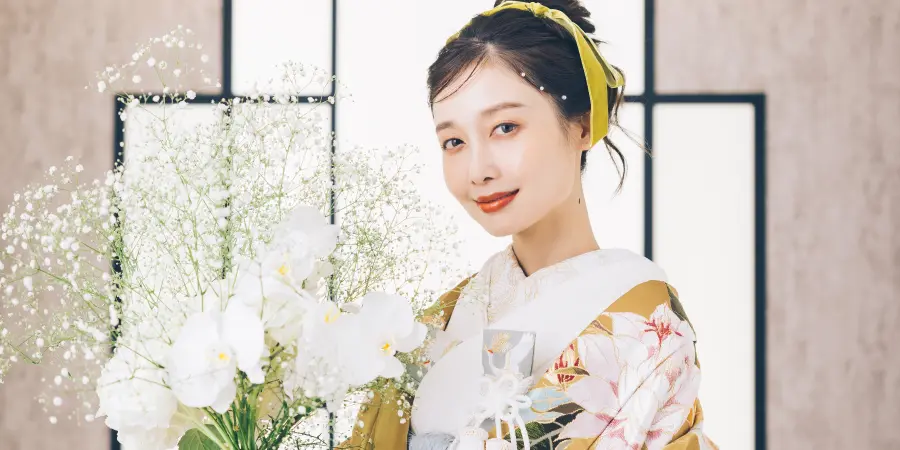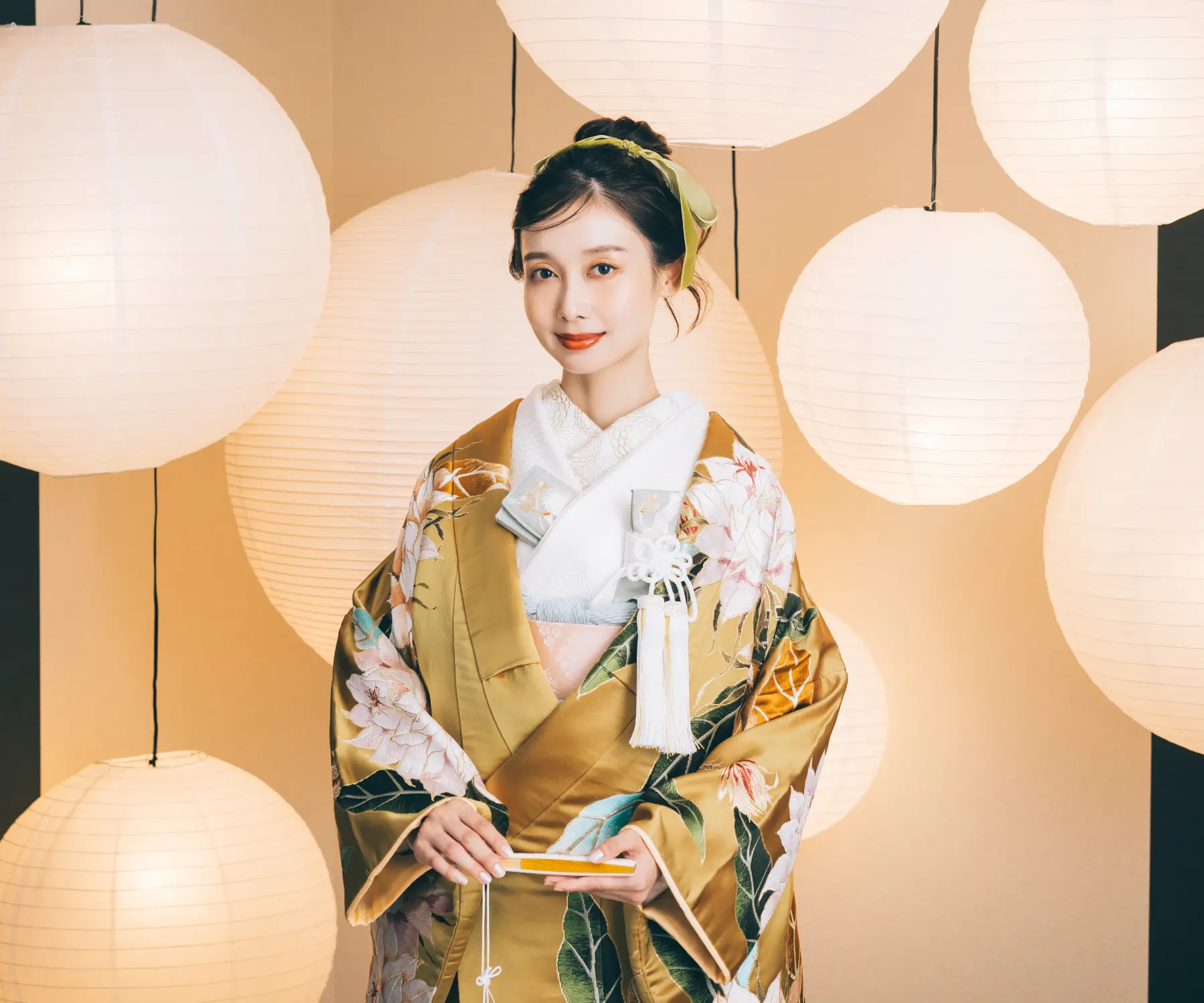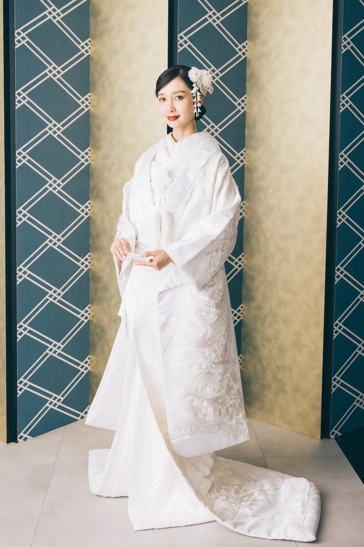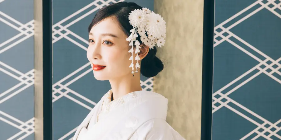 和装はすっきりまとめたアップヘア、洋装はフェミニンなダウンスタイルなど、衣装に合わせたヘアチェンジを楽しめます。